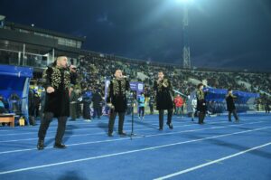 Қала әкімі Ғабит Сыздықбеков жиналған қауымды Премьер-лиганың жаңа маусымының басталуымен құттықтап, жаңа Конституцияның елдің саяси жүйесін жаңғыртып, азаматтардың құқықтары мен мүмкіндіктерін кеңейтетін маңызды құжат екенін атап өтті. Сонымен қатар ол тұрғындарды 15 наурызда өтетін республикалық референдумға белсенді қатысуға шақырды.