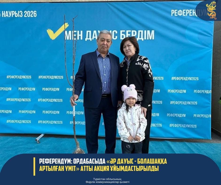 Ордабасы ауданында референдум күніне орай №455 дауыс беру учаскесінде ерекше символикалық акция ұйымдастырылды. Онда дауыс беруге келген әрбір азаматқа тал мен гүл көшеттері табысталды. «Әр дауыс – болашаққа артылған үміт» атты бастама — азаматтардың ел болашағына деген жауапкершілігін және белсенді азаматтық ұстанымын білдіруді мақсат етеді. Әрбір отырғызылған көшет пен егілген гүл тұқымы – жаңа өмірдің, жаңарудың және дамудың белгісі.