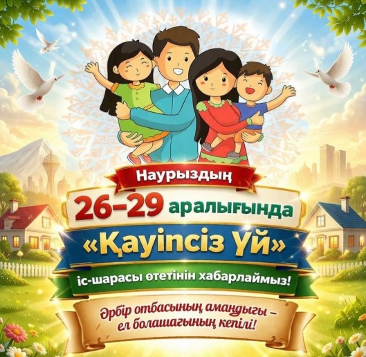 2026 жылғы 26–29 наурыз аралығында Шымкент қаласы, Абай ауданы аумағында «Қауіпсіз үй» жедел-профилактикалық іс-шарасы ұйымдастырылады.