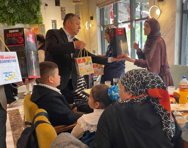 Сол бастамалардың жалғасы ретінде ұйымдастырылған бүгінгі қайырымдылық шарасы әлеуметтік қолдауды қажет ететін отбасыларға бағытталды. Шара барысында мерекелік дастархан жайылып, қатысушыларға сыйлықтар табысталды. Балаларға ерекше көңіл бөлініп, олардың жүзінде қуаныш пен шаттық сезімі байқалды.