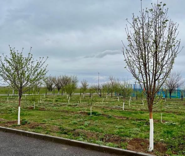 Отырғызылған ағаш көшеттерінің барлығы арнайы қоршаулармен қоршалып, олардың жерсінуі мен дұрыс өсуіне жағдай жасалып, күтім жұмыстары жүйелі түрде жүргізілуде, сонымен қатар су тапшылығын болдырмау мақсатында тамшылатып суару жүйесін енгізу қарастырылып, бұл үшін арнайы ұңғыма құдық қазылып, суару инфрақұрылымы кезең-кезеңімен жетілдірілуде.