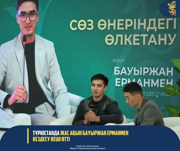 Түркістан қаласында 23 сәуір – Ұлттық кітап күні мерекесіне орай мазмұнды әрі тағылымы мол әдеби кездесу кеші өтті. Іс-шараны Ы.Алтынсарин атындағы балалар кітапханасы ұйымдастырып, оған жас ақын, «Оңтүстік Қазақстан» газетінің тілшісі Бауыржан Ерман арнайы қонақ ретінде шақырылды. Бұл кеш кітапсүйер қауым мен жас оқырмандар үшін ерекше рухани алаңға айналып, әдебиет пен поэзияның маңызын кеңінен насихаттауға бағытталды.