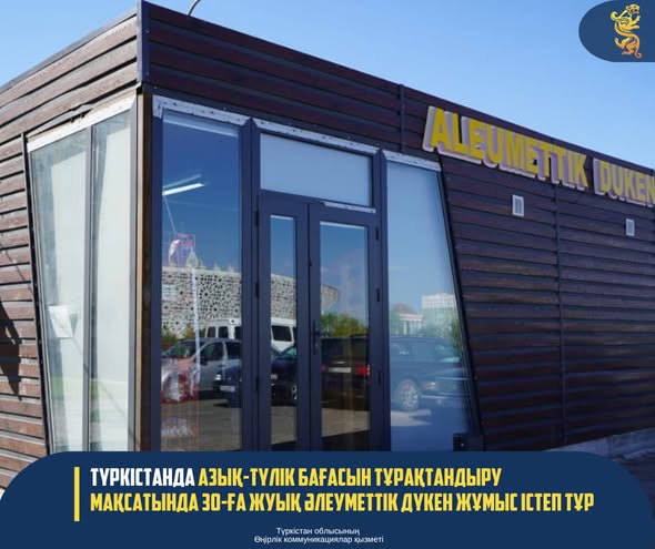 Түркістан қаласында азық-түлік бағасын тұрақтандыру және тұрғындардың негізгі тауарларға қолжетімділігін қамтамасыз ету бағытында жүйелі жұмыстар жүргізілуде. Қазіргі таңда қала аумағында 30-ға жуық әлеуметтік дүкен тұрақты түрде жұмыс істеп, халыққа күнделікті тұтынуға қажетті азық-түлік өнімдерін қолайлы бағада ұсынуда.